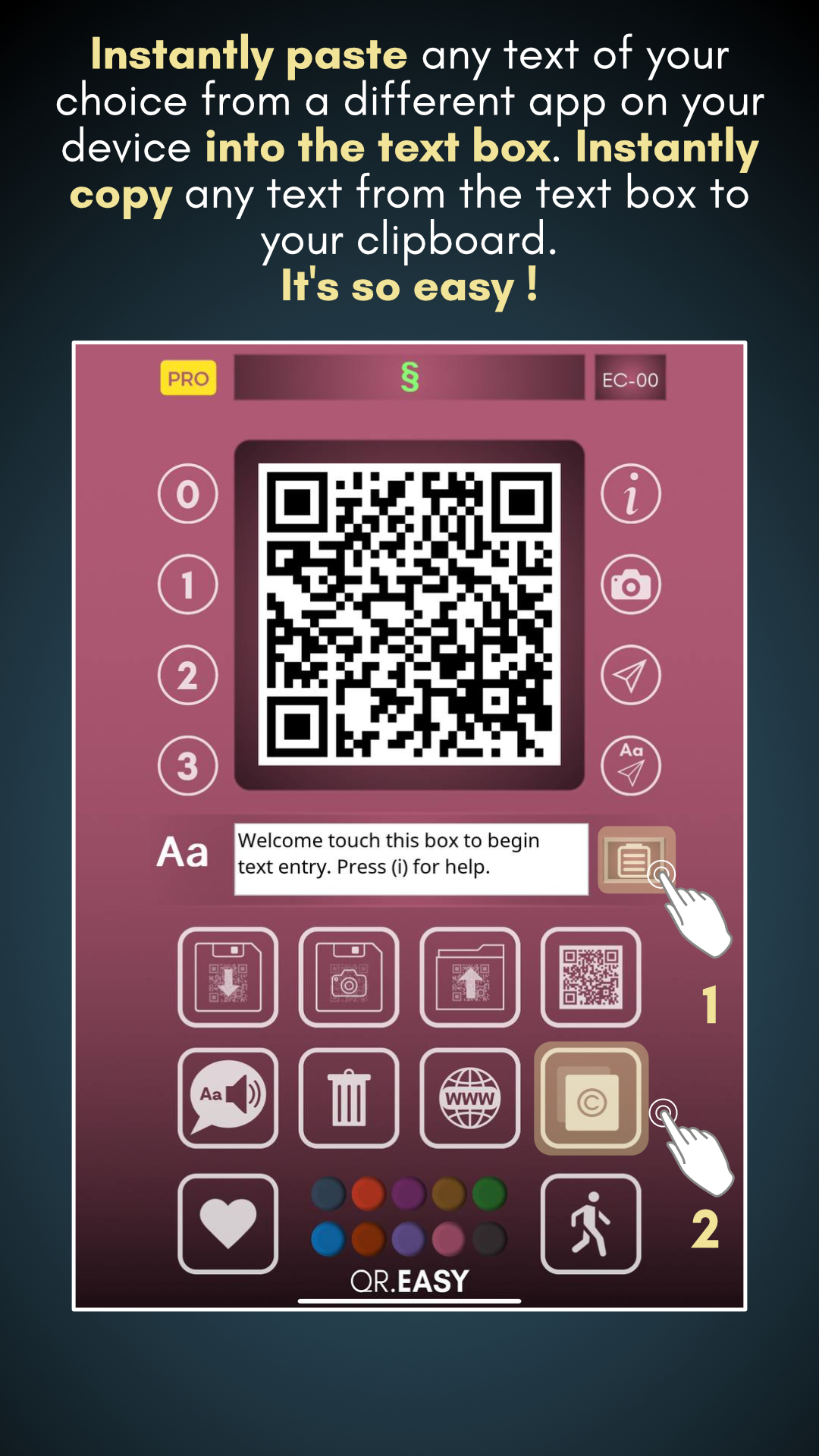🔋‘Easily copy’ function: Instantly copy text from the text box in QR.EASY and paste it into any other application on your device.