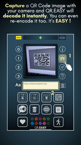 🔋 'Upload & Decode' a QR Code Image from your android device: You can easily select a QR Code image already stored on your android device and QR.EASY Pro will decode it for you instantly. You can even re-encode the decoded message using a different error correction level.